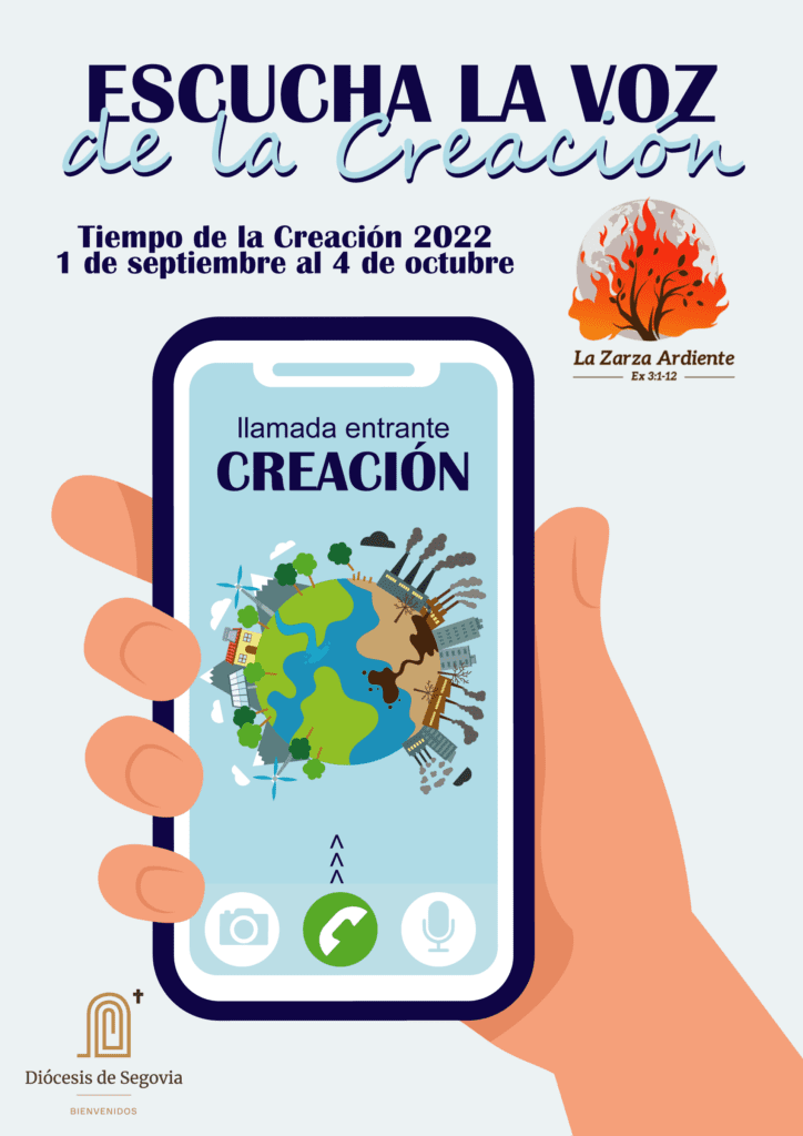 Como símbolo, la zarza ardiente. Los incendios son hoy signo de los efectos devastadores del cambio climático sobre los más vulnerables: la Creación grita mientras los bosques crepitan, los animales huyen y las personas se ven obligadas a abandonar sus hogares. Sin embargo, el fuego que llamó a Moisés mientras cuidaba su rebaño ni consumió ni destruyó la zarza. Este Tiempo de la Creación nos recuerda que debemos pararnos y escuchar a la madre tierra, debemos llenarnos de esperanza para apagar el fuego de la injusticia con la luz del amor sanador de Dios que sostiene nuestra casa común.