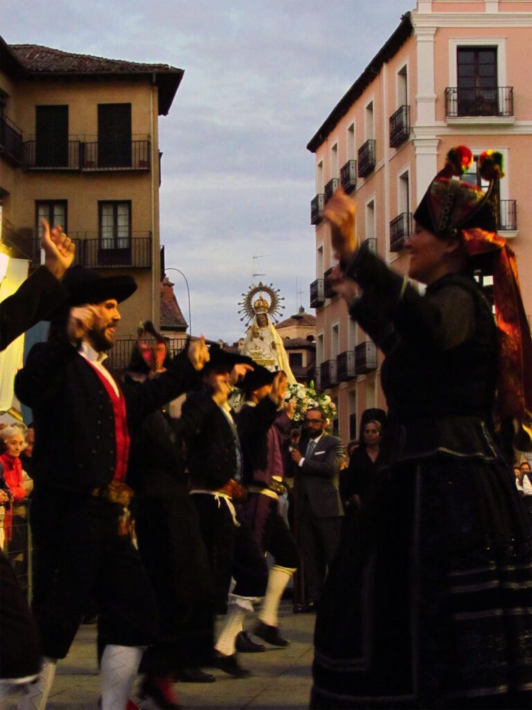 En la plaza del Acueducto tendrá lugar la despedida oficial de Nuestra Señora, con el desfile de la Unidad de Alumnos de la Academia de Artillería y danzas a cargo del «Grupo de Coros y Danzas Emperador Teodosio». A continuación, palabras del Sr. Obispo y canto de la Salve, con lo que se dará por finalizada la despedida oficial. Seguidamente, la imagen continuará su recorrido desde el Acueducto hasta su santuario. La entrada al mismo se realizará a través de un arco que el «Grupo de Coros y Danzas Emperador Teodosio» formará en su honor.