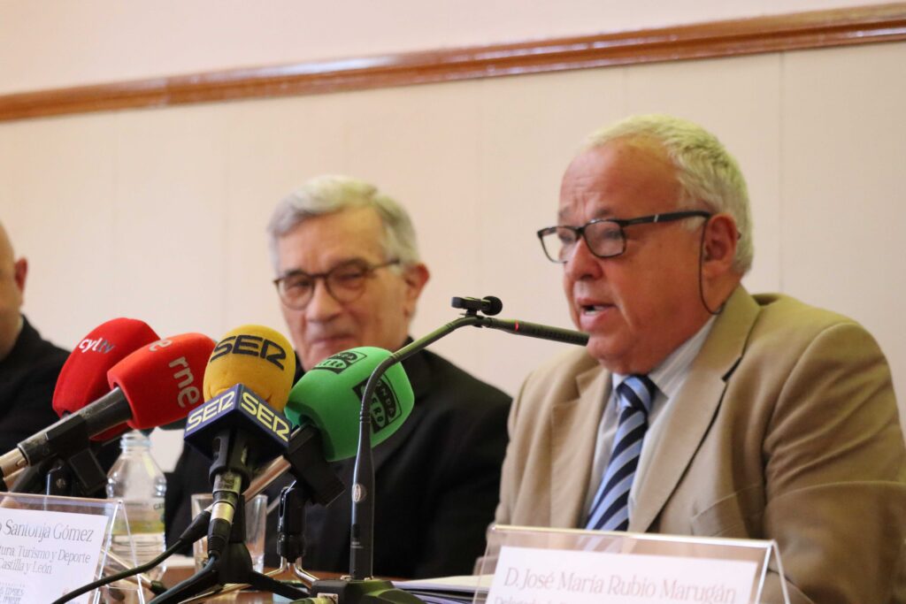 El delegado diocesano de Patrimonio, José María Rubio, ha sido el encargado de ofrecer los detalles técnicos de las piezas que la Diócesis ha cedido a Las Edades en una rueda de prensa que ha concluido con la intervención del Consejero de Cultura de la Junta de Castilla y León, Gonzalo Santonja. El consejero ha iniciado su intervención remarcando su alegría por que la muestra de Las Edades regrese a territorio castellanoleonés, tras su paso por Plasencia.