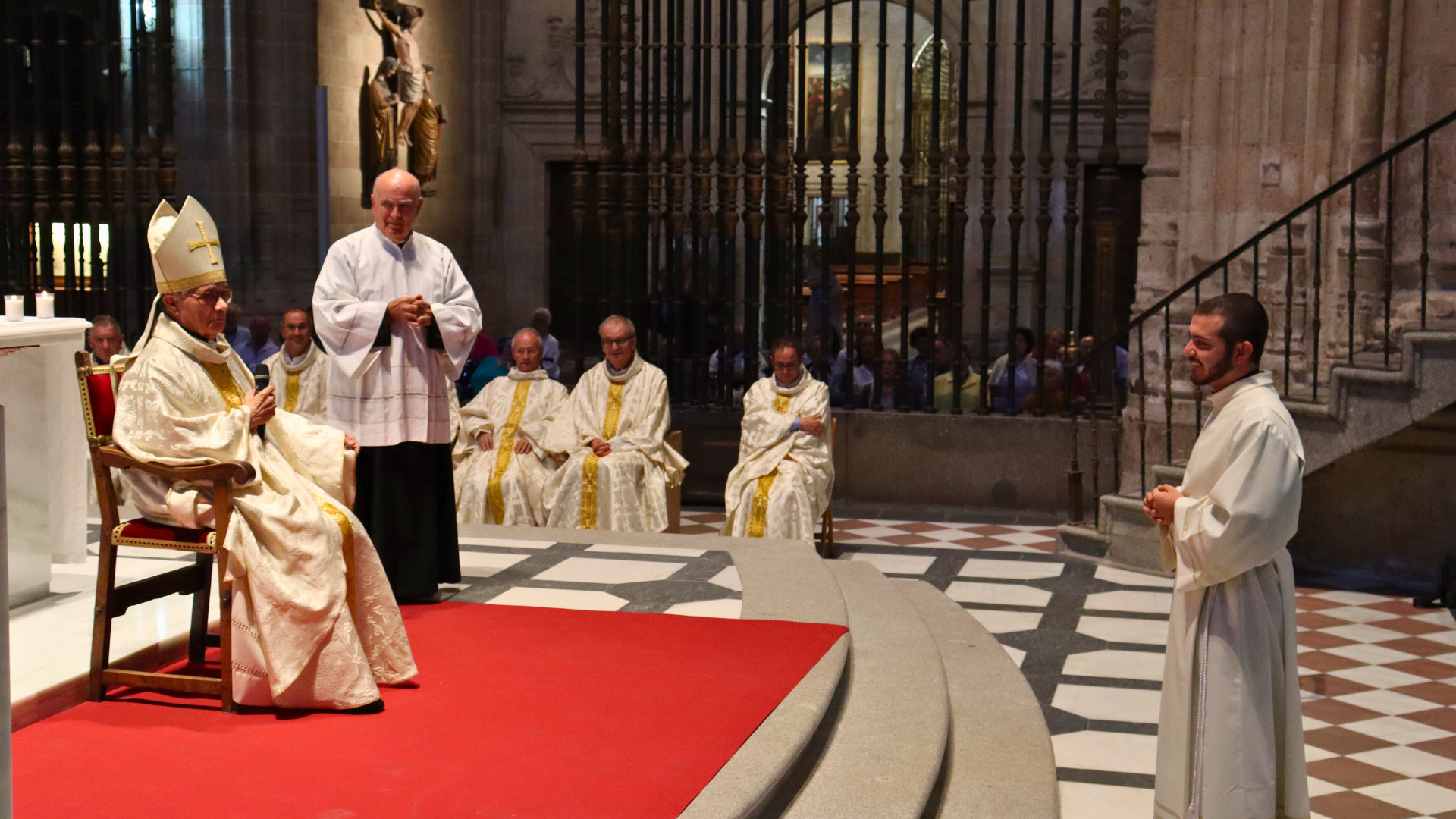 Durante la celebración, el joven diácono efectuará sus promesas y, tras ello, protagonizará la postración, momento en el que se invocará la intercesión de los santos mediante el canto de las letanías. A continuación, tendrá lugar el rito de ordenación sacerdotal con la imposición de manos —por el Obispo y todo el presbiterio—, y la plegaria de ordenación, tras la que Alberto recibirá su estola al estilo sacerdotal y será vestido con la casulla. Después, recibirá la unción con el Santo Crisma, signo del carácter sacramental de la ordenación. Será en las manos, porque ellas son las que consagrarán, bendecirán, tocarán… haciendo presentes los gestos mismos de Cristo. Don César también entregará a Alberto el cáliz y la patena con la que se va a celebrar la Eucaristía, en la que el nuevo presbítero concelebrará por primera vez. El abrazo entre ambos, y después con los presbíteros concelebrantes, en señal de acogida en el ministerio, sellará con gozo y alegría el rito que la asamblea vivirá como una gracia de Dios para nuestra Iglesia peregrina en Segovia.
