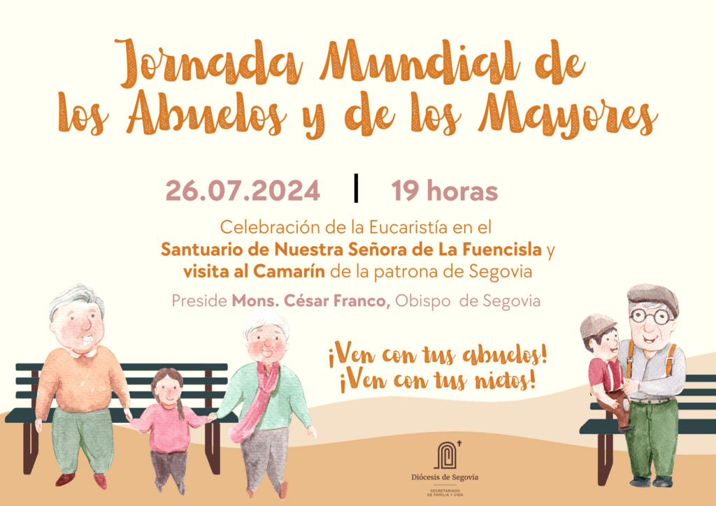 En nuestra Diócesis de Segovia, el Secretariado de Familia y Vida ha organizado una Eucaristía muy especial. Tendrá lugar mañana, viernes 26 de julio, a las 19 horas en el Santuario de Nuestra Señora de la Fuencisla, presidida por el Obispo de Segovia, Mons. César Franco. Tras la Eucaristía, podrá visitarse el Camarín de la patrona de la ciudad. Una cita a la que abuelos, nietos y personas mayores están especialmente invitadas a participar.