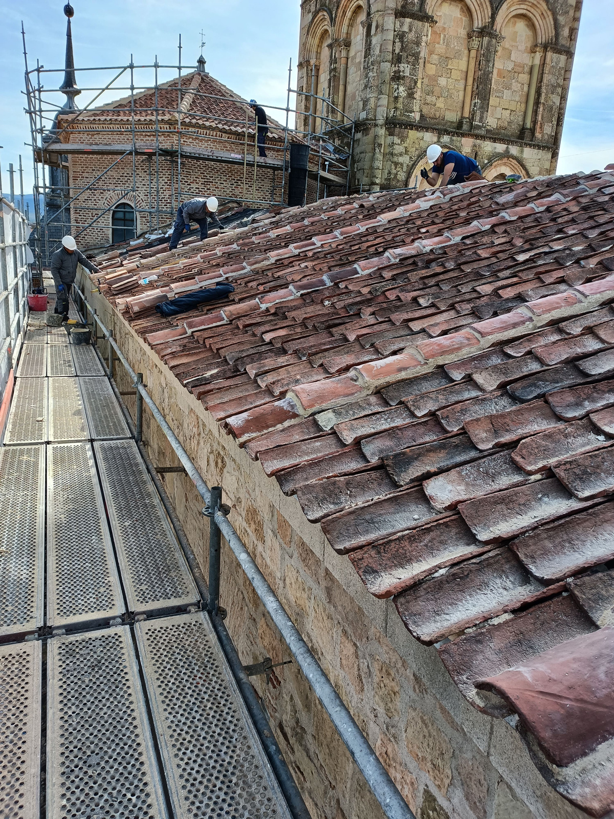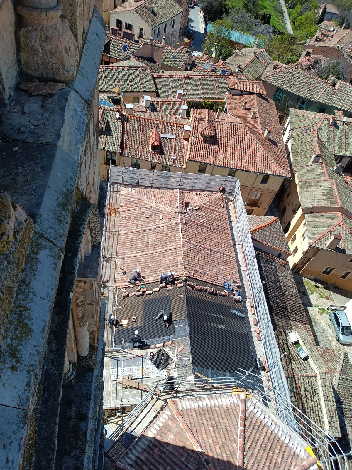 La intervención principal ha consistido en la retirada completa de las tejas y la impermeabilización de las cubiertas para restaurarlas con tejas colocadas «a la segoviana». En esta labor se ha tenido en cuenta los condicionantes medioambientales, por lo que se han integrado nidos entre las tejas, mejorando y controlando las condiciones de cría de determinadas aves.