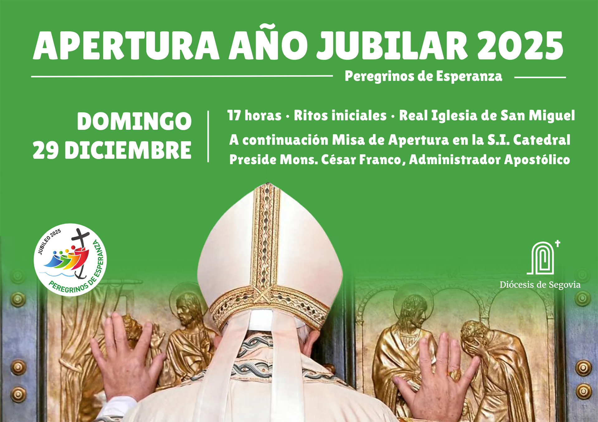 Cinco días después, el próximo domingo 29 de diciembre —festividad de la Sagrada Familia de Nazaret—, las diócesis de todo el mundo abrirán el jubileo en sus sedes locales. Así también se hará en nuestra Diócesis de Segovia.