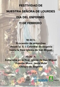 Además, mañana día 11 se celebrará la procesión de las antorchas de la Hospitalidad diocesana de Lourdes. Comenzará a las 18.30h en la S.I. Catedral, desde donde partirá hasta la Real Iglesia de San Miguel. Allí está previsto que se celebre la Eucaristía a las 19.30 horas, presidida por nuestro obispo D. Jesús. Para aquellos que no puedan asistir, será retransmitida en directo en el canal de YouTube de la Hospitalidad, a través de este enlace.