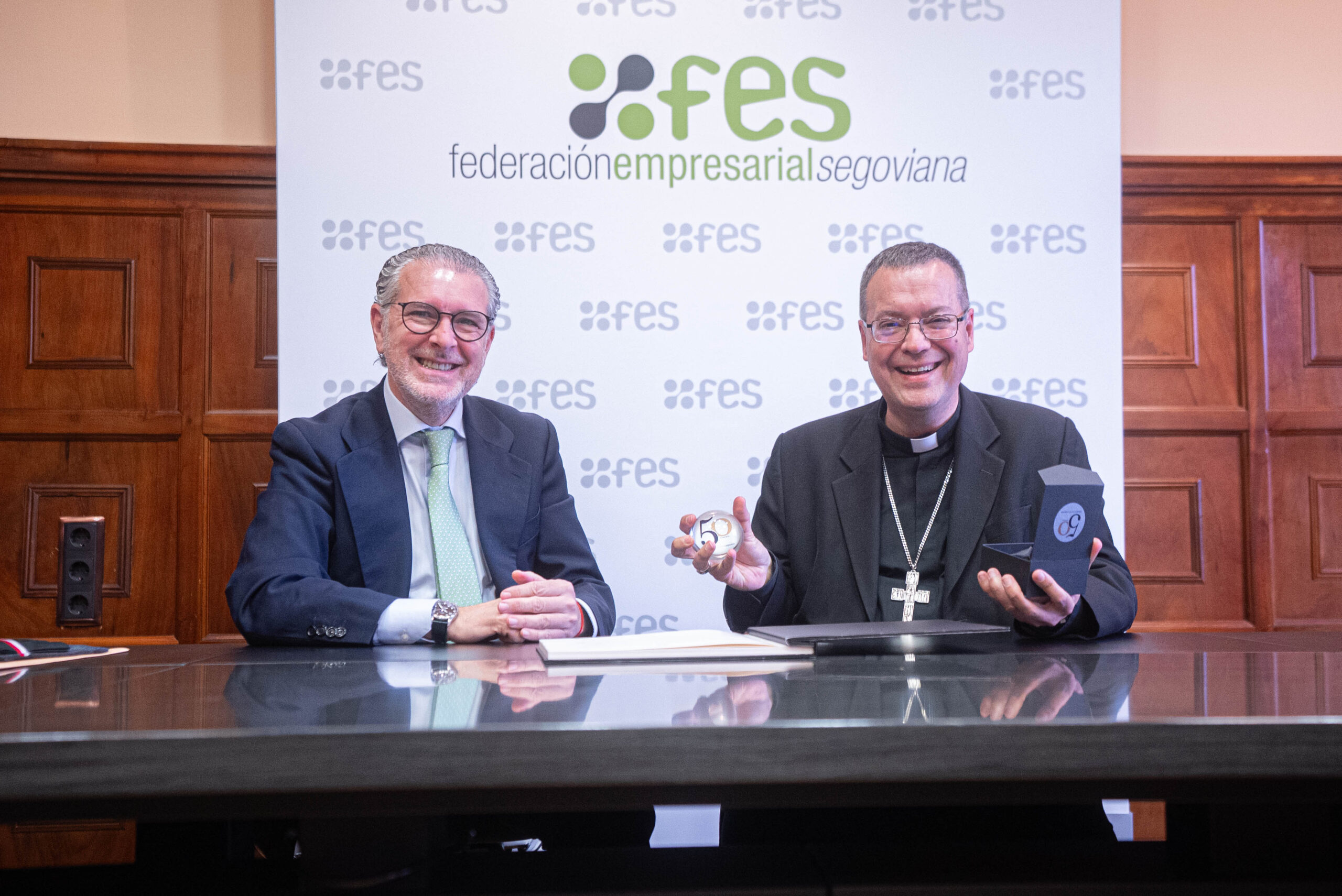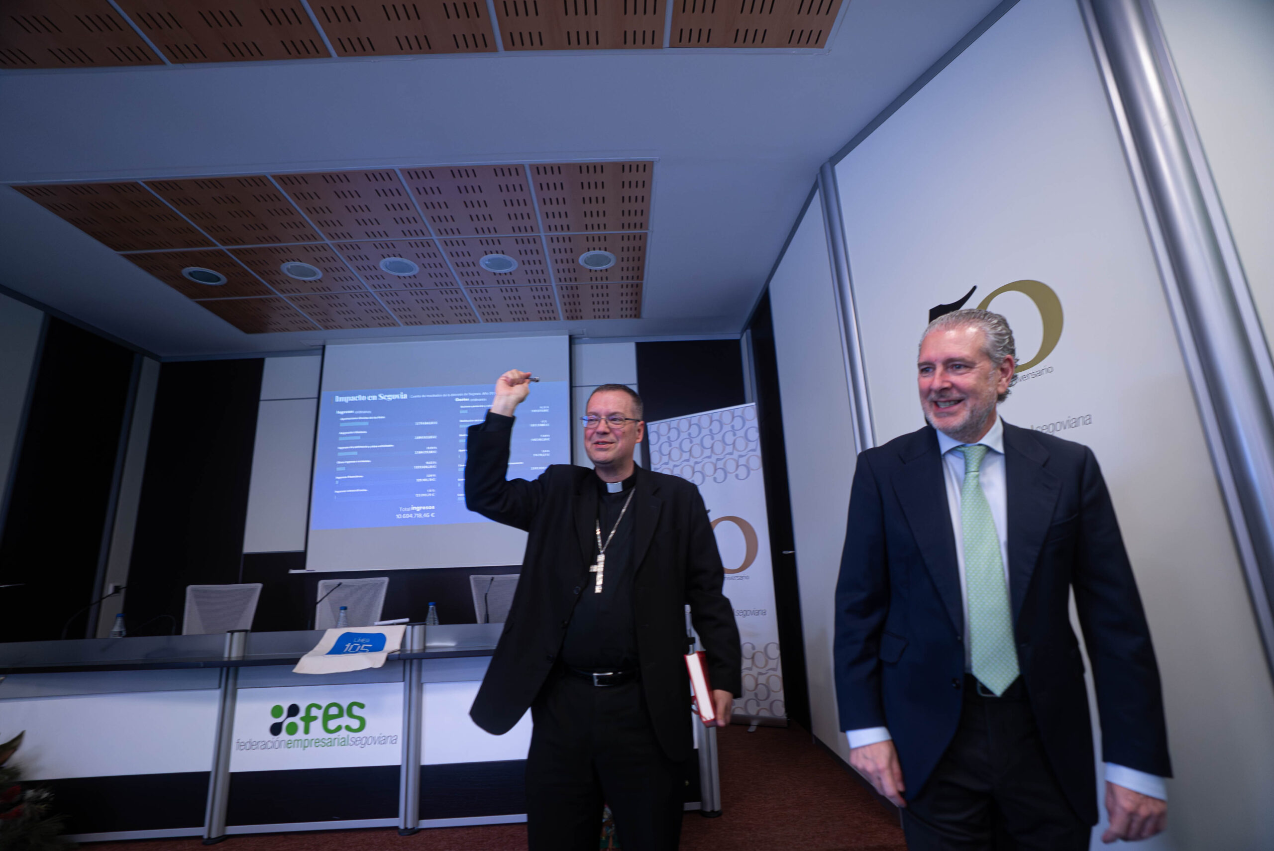 El encuentro ha concluido con la bendición de las instalaciones de la Federación Empresarial Segoviana por parte del obispo. Asimismo, con motivo del 50 aniversario de la institución, Mons. Jesús Vidal ha firmado en el libro de honor y ha recibido un detalle conmemorativo.