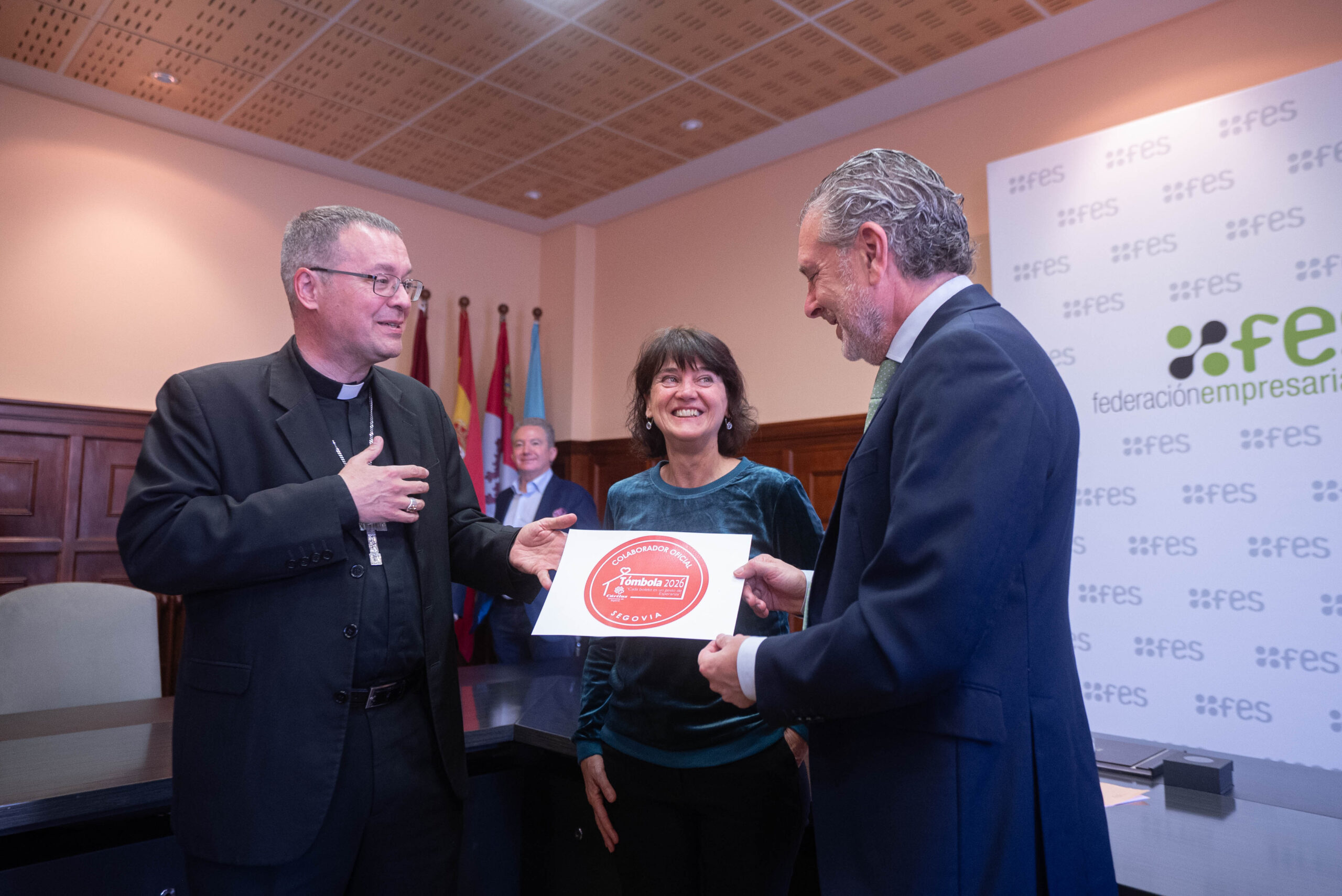 El acto ha contado con la participación del presidente de FES, Andrés Ortega; el Obispo de Segovia, Mons. Jesús Vidal; el miembro del Consejo Diocesano de Economía, Luis Pérez de Cossío; y la delegada diocesana de Comunicación, Laura García.