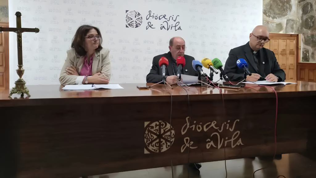 2026027 Asamblea Iglesia en Castilla. La Diócesis de Ávila ha acogido este lunes la rueda de prensa de presentación de los detalles finales de la Asamblea Eclesial de la Iglesia en Castilla, un encuentro histórico que reunirá en la ciudad, del 30 de abril al 2 de mayo, a cerca de 300 delegados procedentes de las nueve diócesis castellanas. El acto ha contado con la intervención del obispo de Ávila, Mons. Jesús Rico García; el vicario de pastoral de la diócesis, Jorge Zazo; y Marta Benito, laica de nuestra diócesis de Segovia y participante en la asamblea.