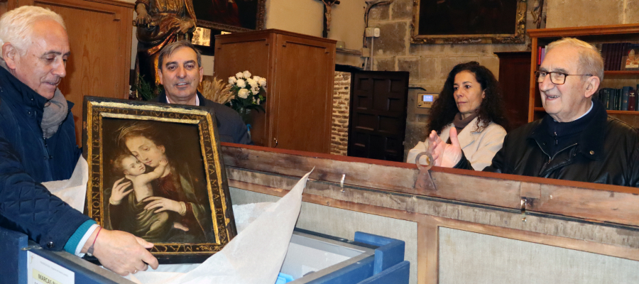 LAS PINTURAS QUEMADAS EN EL INCENDIO DE LA TRINIDAD VUELVEN A LA SACRISTÍA TRAS SU RESTAURACIÓN «San Juan Bautista», «Virgen con niño» y «La Anunciación»…